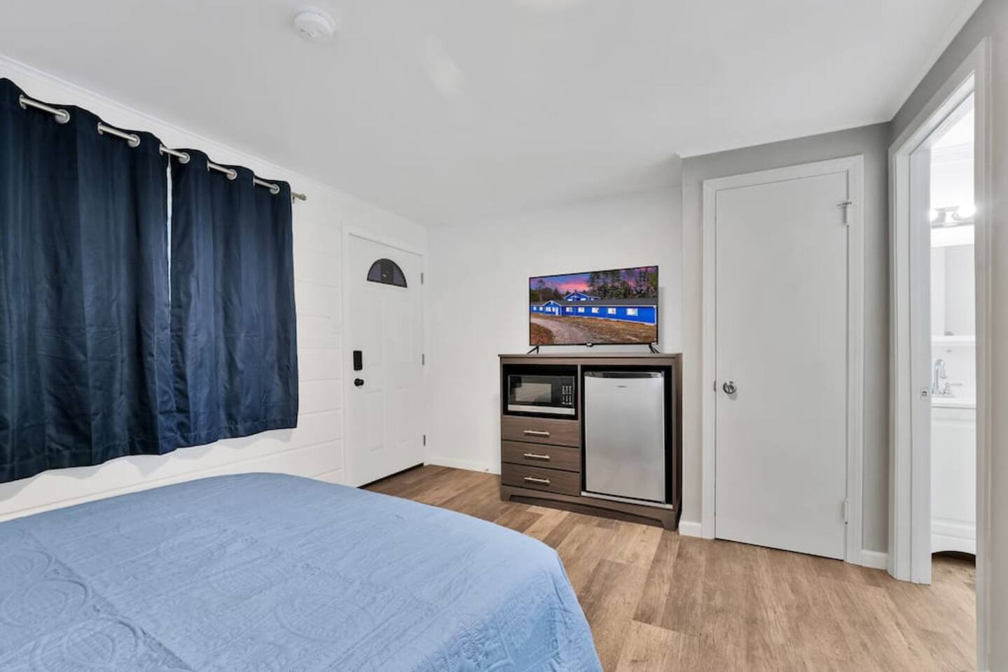 Our rooms and bathrooms are designed for comfort and efficiency. Bathrooms are compact, with standard showers and essential amenities. While not oversized, they are clean, functional, and well maintained. Parking is available on site in a gravel lot (not paved). Guests also have access to outdoor seating and picnic tables, including a pavilion area behind the property for relaxing outdoors. As a small, independently operated property, we focus on providing a simple, comfortable stay with easy self-check-in and responsive remote support.